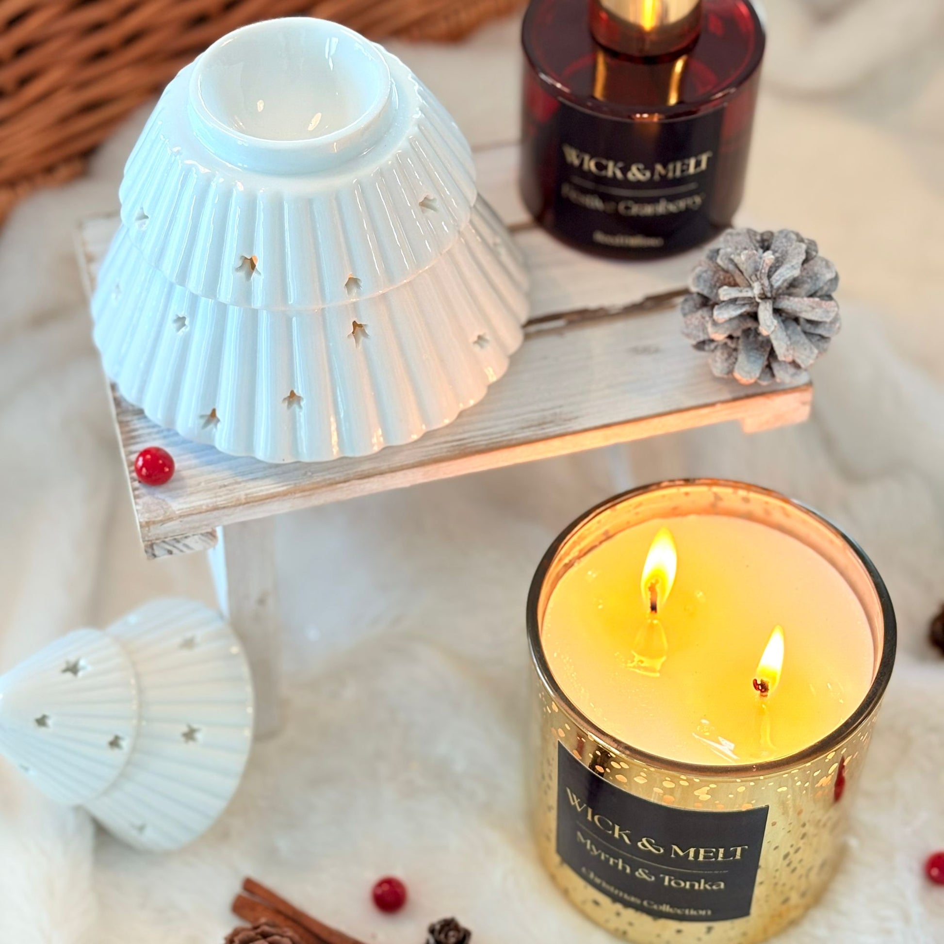 This sweet wax burner is shaped like a Christmas tree and is easily incorporated into any festive decor. Pair with winter wax melts to fill the home with Christmas fragrance.